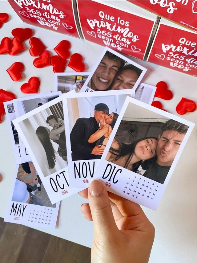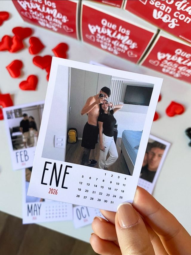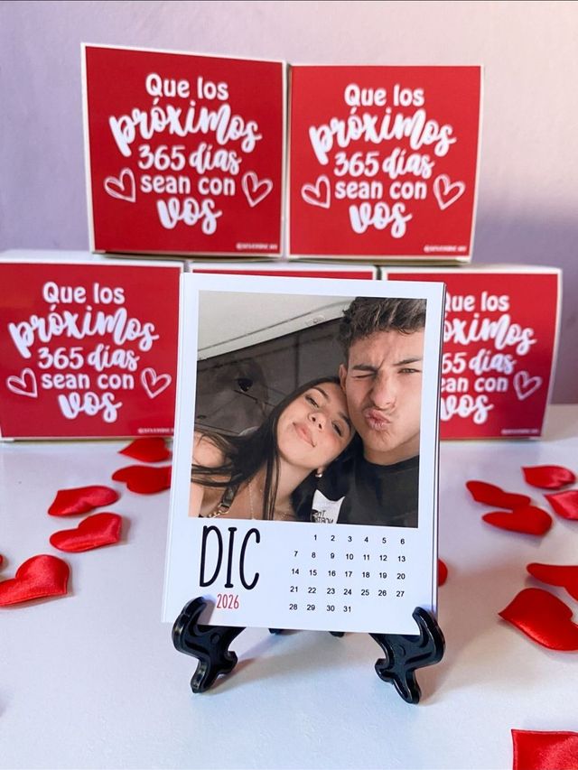 Tradicional con soporte para apoyar en cualquier rincón, imantado para la heladera, además de que podes elegir que el diseño sea con una o varias fechas marcadas con un corazón (indicar por mail) o también que las fotos tengan un orden especifico para que sea un regalo aún más personalizado! (indicar por mail)