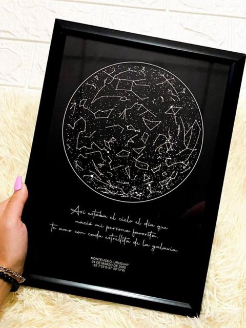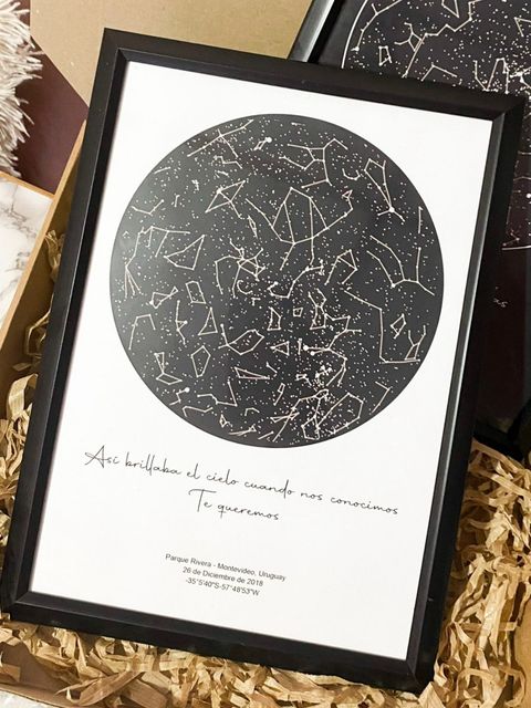 Un mapa estelar que muestra cómo estaba el cielo en una fecha única, transformando un momento especial en un recuerdo para siempre!