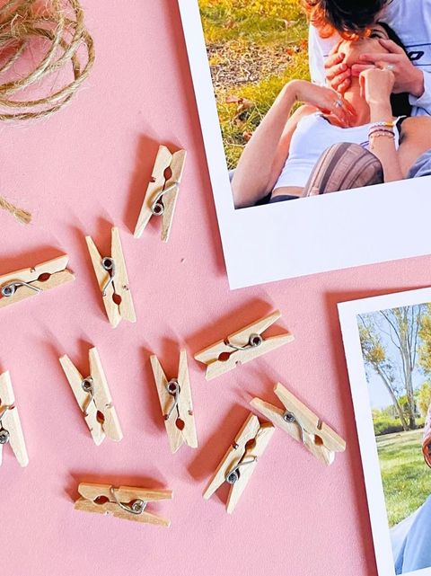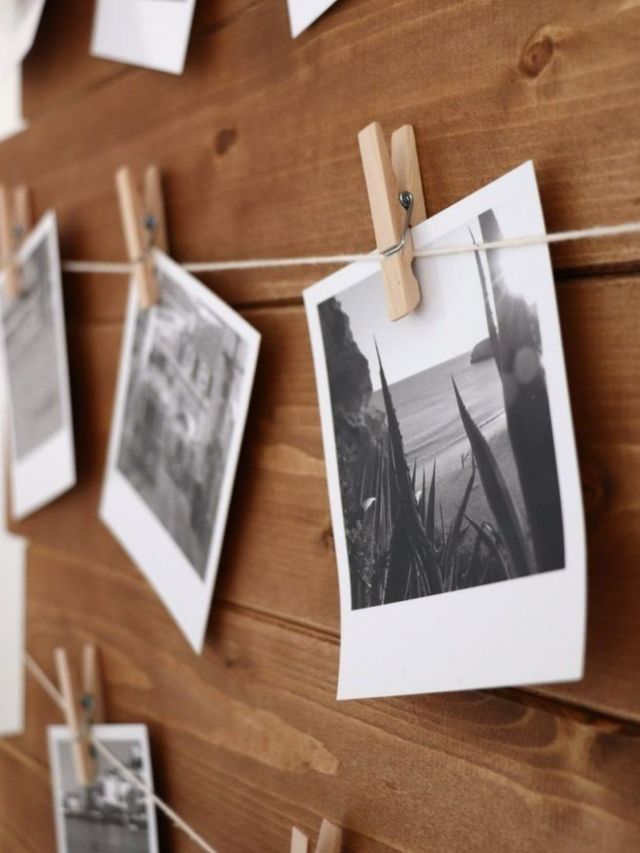 Set de fotos polaroid para colgar con palillos e hilo. Ver más detalles