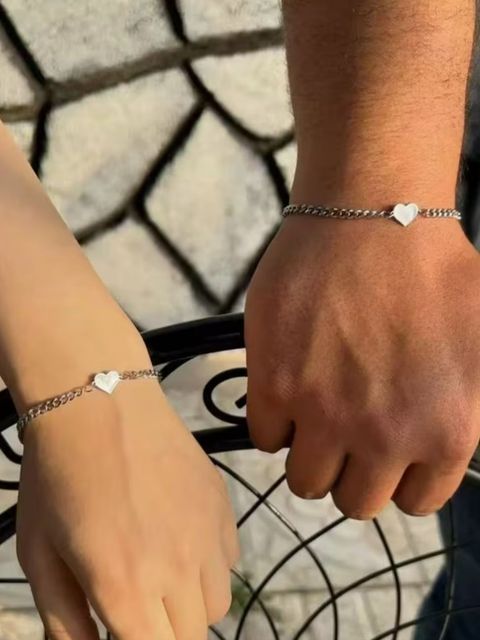 Hermosas pulseras de acero con dije de corazón para compartir entre 2 personas que se quieran! Una pulsera es mas pequeña y la otra es mas grande, asi les quedan perfectas a ambos!