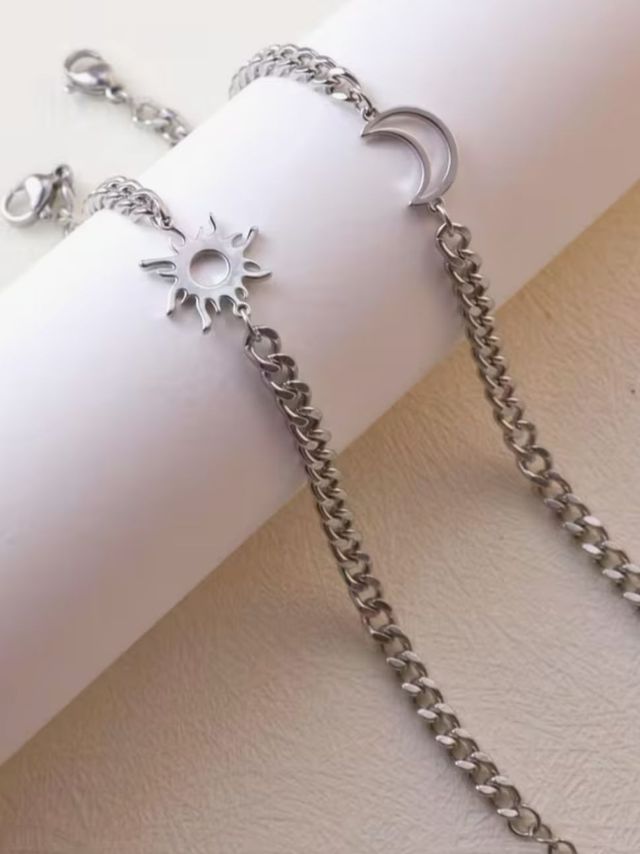 Hermosas cadenitas de acero con dije de sol y luna para compartir entre novios, que representan dos almas distintas que se complementan perfectamente!